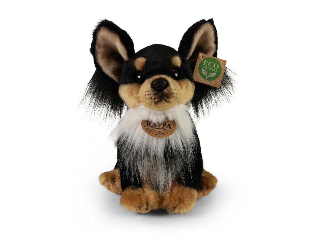 Rozkošný plyšový pes čivava nesmí chybět v žádném dětském pokojíčku! Tento sedící pes je vyroben z exkluzivní, velmi kvalitní plyše a jeho délka je cca 24 cm. Tento senzační plyšový kousek je ideální i jako dárek! Co to vlastně ECO-FRIENDLY znamená? Výplň plyšové hračky je vyrobena z recyklovaných PET lahví. Tento materiál je zcela bezpečný, na omak nerozeznatelný od standartní výplně a plně atestovaný pro bezpečnost i těch nejmenších. Rozhodli jsme se jít zelenou cestou co nejméně zatěžující životní prostředí- cestou ECO-FRIENDLY.Doplňkové parametry