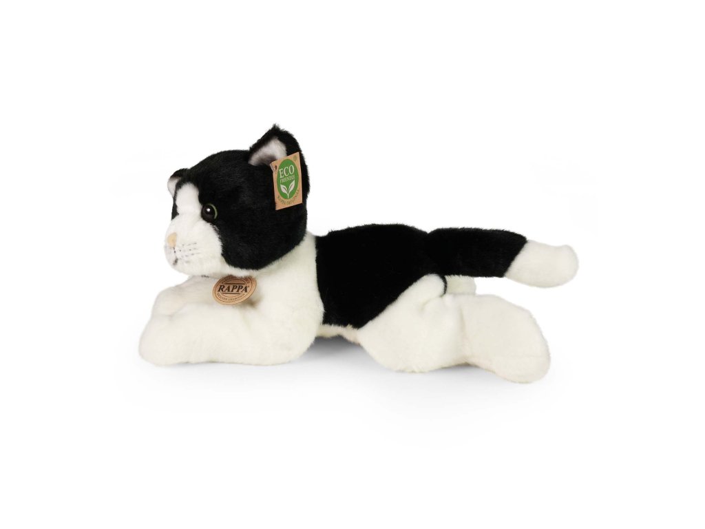 Krásná bílo-černa kočka přece nesmí chybět ve tvé sbírce plyšových zvířátek! Roztomilá kočička o velikosti 30 cm je vyrobena z vysoce kvalitní, heboučké plyše a díky tomu vypadá jako živá a je tak součástí exkluzivní kolekce plyšových hraček RAPPA. Tento plyšový kousek je ideálním dárkem pro malé i velké milovníky plyšáků! Co to vlastně ECO-FRIENDLY znamená? Výplň plyšové hračky je vyrobena z recyklovaných PET lahví. Tento materiál je zcela bezpečný, na omak nerozeznatelný od standartní výplně a plně atestovaný pro bezpečnost i těch nejmenších. Rozhodli jsme se jít zelenou cestou co nejméně zatěžující životní prostředí- cestou ECO-FRIENDLY.Doplňkové parametry