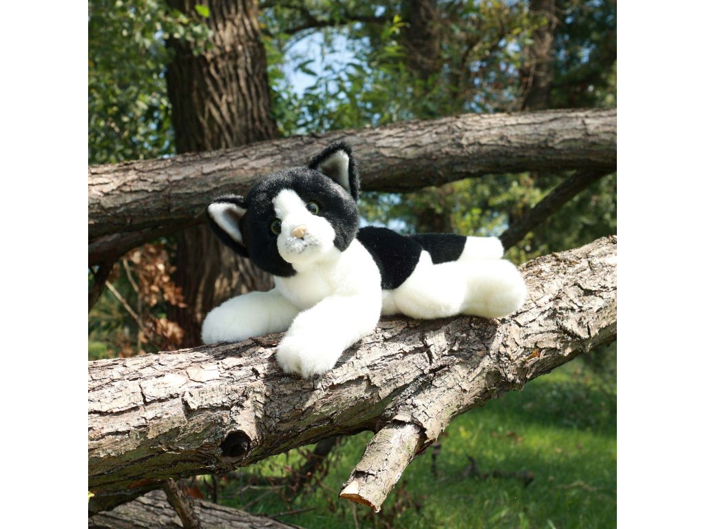 Plyšová kočka bílo-černá 30 cm