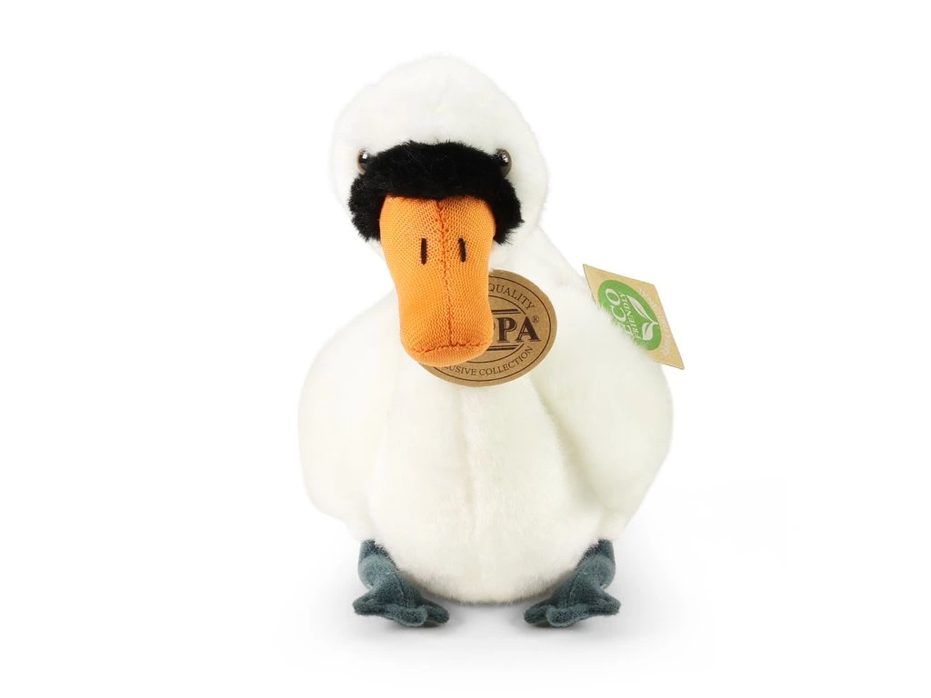 Plyšová labuť měří 20 cm a díky těm nejkvalitnějším materiálům se řadí do Exkluzivní kolekce plyšových hraček značky Rappa. Díky ručnímu zpracování každého kusu navíc vypadá jako živá. Proč označení ECO-FRIENDLY? Rappa si je vědoma všech dopadů na životního prostředí, zaměřuje se na udržitelnost a omezení používání plastů na minimum. Proto je výplň hraček vyrobena z recyklovaných materiálů, zejména PET lahví. Ta je však zcela nezávadná a vhodná i pro děti od narození. FUN FACT: Věděli jste, že labutě jsou většinou velmi věrné jednomu partnerovi po celý život?Doplňkové parametry