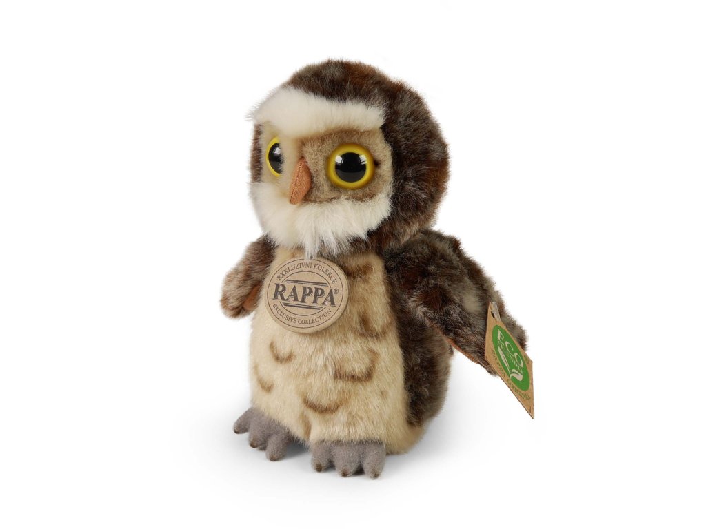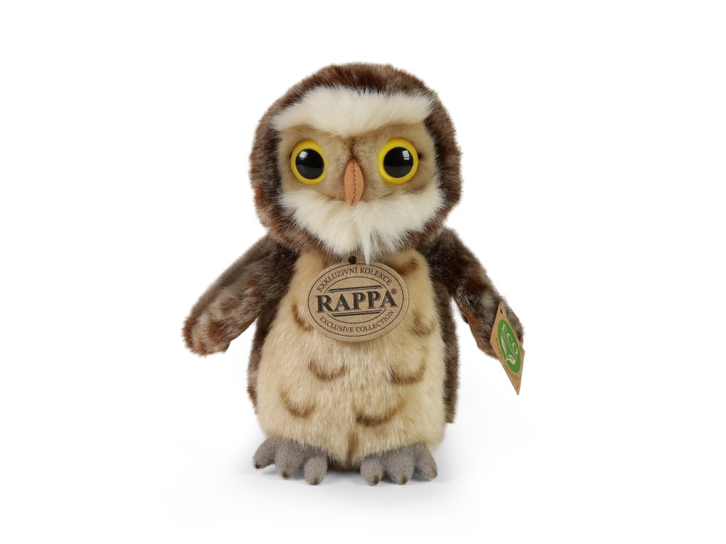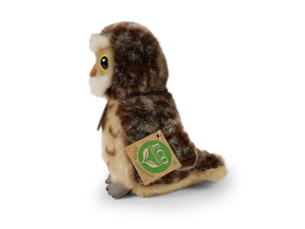 Plyšová sova měří 16 cm a díky těm nejkvalitnějším materiálům se řadí do Exkluzivní kolekce plyšových hraček značky Rappa. Díky ručnímu zpracování každého kusu navíc vypadá jako živá. Proč označení ECO-FRIENDLY? Rappa si je vědoma všech dopadů na životního prostředí, zaměřuje se na udržitelnost a omezení používání plastů na minimum. Proto je výplň hraček vyrobena z recyklovaných materiálů, zejména PET lahví. Ta je však zcela nezávadná a vhodná i pro děti od narození. FUN FACT: Věděli jste, že sovy mají speciální peří, které jim umožňuje létat téměř neslyšně?Doplňkové parametry