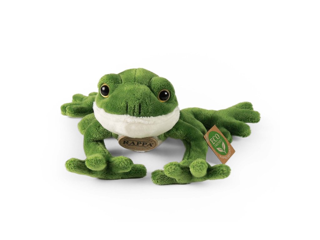 Plyšová žába měří 15 cm a díky těm nejkvalitnějším materiálům se řadí do Exkluzivní kolekce plyšových hraček značky Rappa. Díky ručnímu zpracování každého kusu navíc vypadá jako živá. Proč označení ECO-FRIENDLY? Rappa si je vědoma všech dopadů na životního prostředí, zaměřuje se na udržitelnost a omezení používání plastů na minimum. Proto je výplň hraček vyrobena z recyklovaných materiálů, zejména PET lahví. Ta je však zcela nezávadná a vhodná i pro děti od narození. FUN FACT: Věděli jste, že většina žab sice dýchá plícemi, ale dokážou dýchat i celým povrchem těla – přes svou vlhkou kůži?Doplňkové parametry