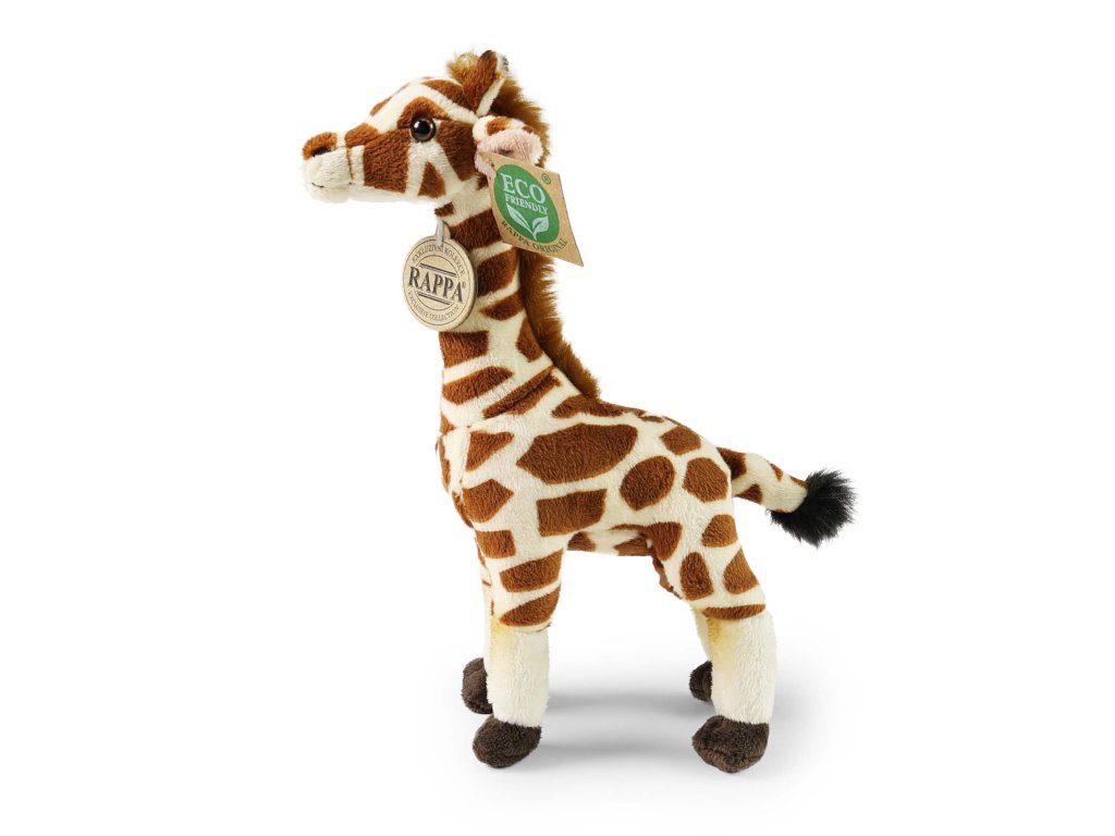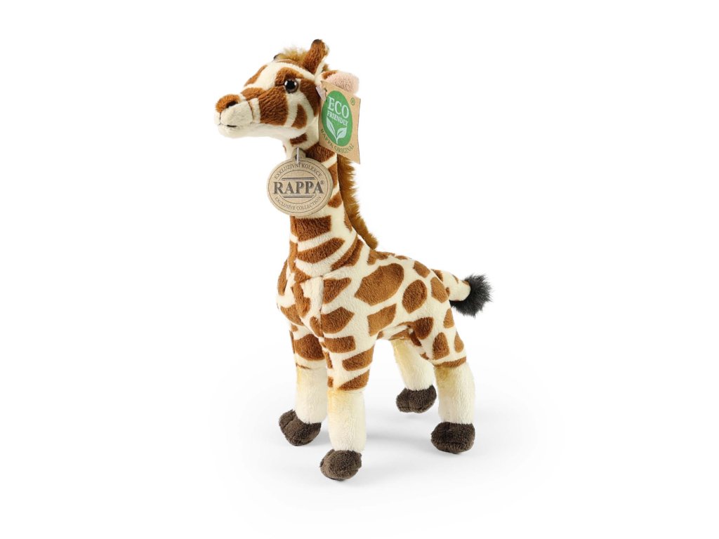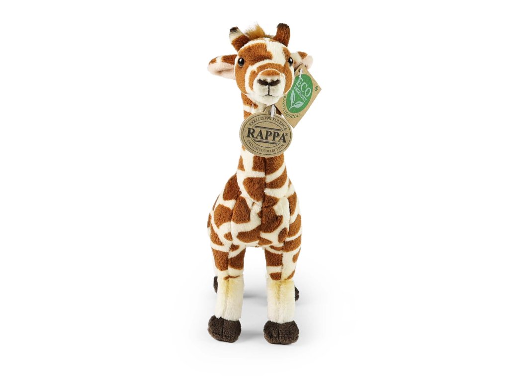 Plyšová žirafa měří 23 cm a díky těm nejkvalitnějším materiálům se řadí do Exkluzivní kolekce plyšových hraček značky Rappa. Díky ručnímu zpracování každého kusu navíc vypadá jako živá. Proč označení ECO-FRIENDLY? Rappa si je vědoma všech dopadů na životního prostředí, zaměřuje se na udržitelnost a omezení používání plastů na minimum. Proto je výplň hraček vyrobena z recyklovaných materiálů, zejména PET lahví. Ta je však zcela nezávadná a vhodná i pro děti od narození. FUN FACT: Věděli jste, že žirafy mají stejně krčních obratlů jako člověk – jenže každý měří až 25 cm?Doplňkové parametry
