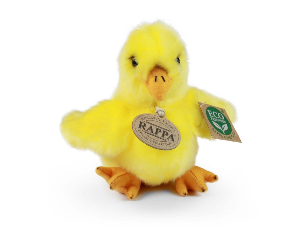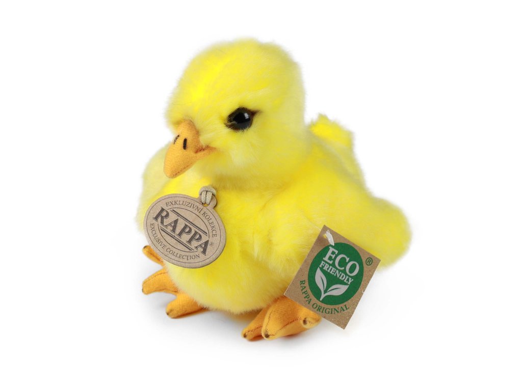 Roztomilé plyšové kuřátko ve velikosti 14 cm je vyrobeno z exkluzivní, velmi kvalitní plyše a je součástí exkluzivní kolekce plyšových hraček RAPPA. Tento senzační plyšový kousek je ideální i jako dárek! Co to vlastně ECO-FRIENDLY znamená? Výplň plyšové hračky je vyrobena z recyklovaných PET lahví. Tento materiál je zcela bezpečný, na omak nerozeznatelný od standartní výplně a plně atestovaný pro bezpečnost i těch nejmenších. Rozhodli jsme se jít zelenou cestou co nejméně zatěžující životní prostředí- cestou ECO-FRIENDLY.Doplňkové parametry