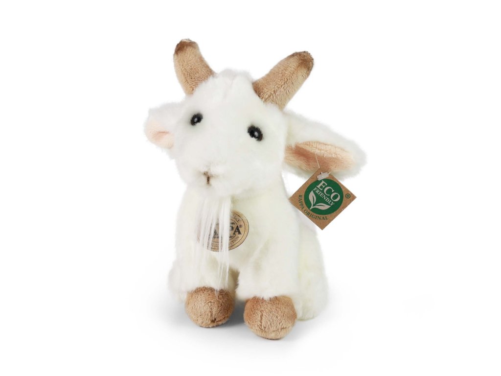 Plyšové kůzle je ručně ušité z vysoce kvalitní, jemné plyše, a díky tomu vypadá jako živé. Toto kůzle se pyšní velikostí 18 cm. Pro svůj roztomilý výraz se stává vítaným společníkem v jakékoliv chvíli. Je součástí exkluzivní kolekce plyšových hraček RAPPA. Rozhodli jsme se jít zelenou cestou co nejméně zatěžující životní prostředí - cestou ECO-FRIENDLY. Co to vlastně ECO-FRIENDLY znamená? Výplň plyšové hračky je vyrobena z recyklovaných PET lahví. Tento materiál je zcela bezpečný, na omak nerozeznatelný od standardní výplně a plně atestovaný pro bezpečnost i těch nejmenších.Doplňkové parametry