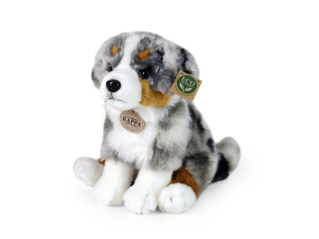 Krásný plyšový pes australský ovčák o velikosti 30 cm je ručně ušitý z vysoce kvalitní, jemné plyše, a díky tomu vypadá jako živý. Je vítaným společníkem nejen v každém dětském pokojíčku. Je součástí exkluzivní kolekce plyšových hraček RAPPA. Rozhodli jsme se jít zelenou cestou co nejméně zatěžující životní prostředí - cestou ECO-FRIENDLY. Co to vlastně ECO-FRIENDLY znamená? Výplň plyšové hračky je vyrobena z recyklovaných PET lahví. Tento materiál je zcela bezpečný, na omak nerozeznatelný od standardní výplně a plně atestovaný pro bezpečnost i těch nejmenších.Doplňkové parametry