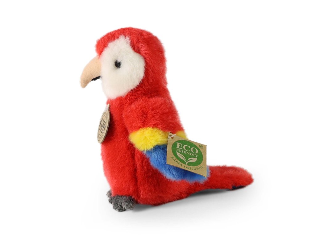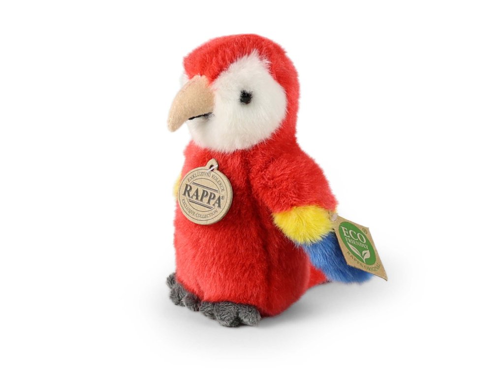 Plyšový pták papoušek červený ara měří 16 cm a díky těm nejkvalitnějším materiálům se řadí do Exkluzivní kolekce plyšových hraček značky Rappa. Díky ručnímu zpracování každého kusu navíc vypadá jako živý. Proč označení ECO-FRIENDLY? Rappa si je vědoma všech dopadů na životního prostředí, zaměřuje se na udržitelnost a omezení používání plastů na minimum. Proto je výplň hraček vyrobena z recyklovaných materiálů, zejména PET lahví. Ta je však zcela nezávadná a vhodná i pro děti od narození. FUN FACT: Věděli jste, že papoušci ara jsou velmi inteligentní a mají schopnost napodobovat lidskou řeč?Doplňkové parametry