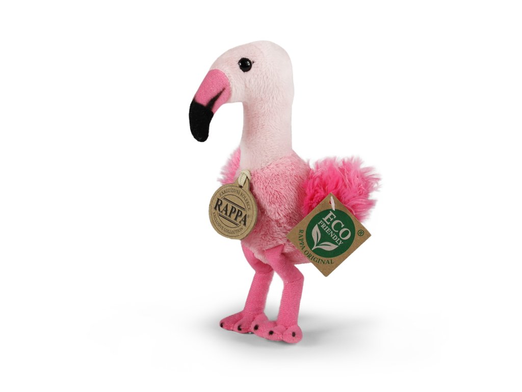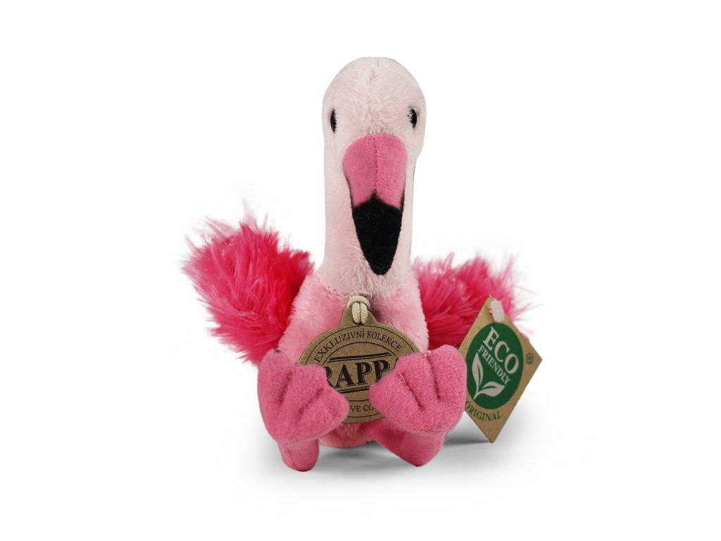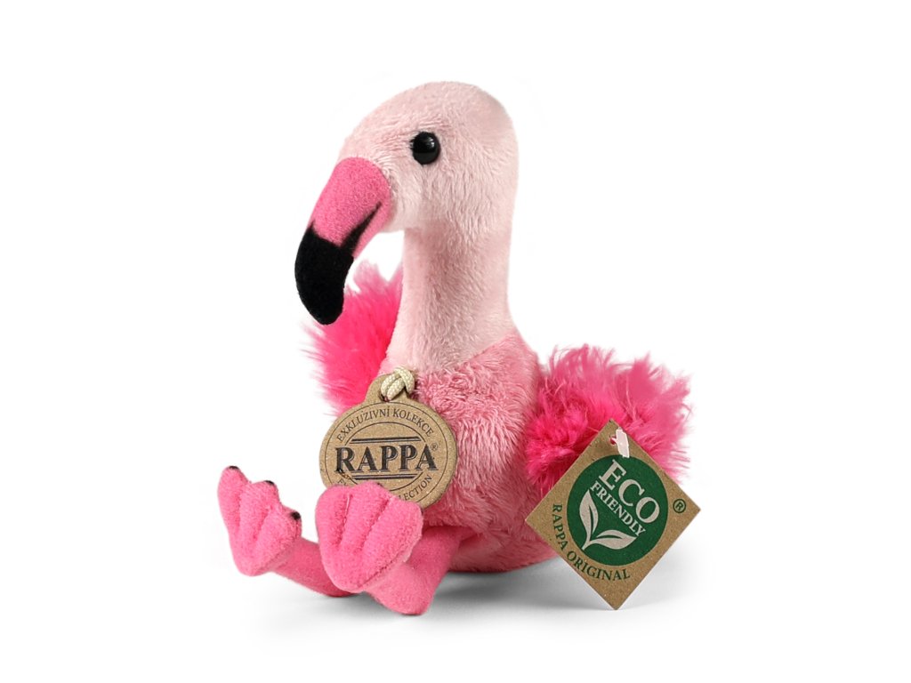 Plyšový plameňák měří 15 cm a díky těm nejkvalitnějším materiálům se řadí do Exkluzivní kolekce plyšových hraček značky Rappa. Díky ručnímu zpracování každého kusu navíc vypadá jako živý. Proč označení ECO-FRIENDLY? Rappa si je vědoma všech dopadů na životního prostředí, zaměřuje se na udržitelnost a omezení používání plastů na minimum. Proto je výplň hraček vyrobena z recyklovaných materiálů, zejména PET lahví. Ta je však zcela nezávadná a vhodná i pro děti od narození. FUN FACT: Věděli jste, že plameňáci se narodí bílí nebo šedí a tu krásnou růžovou barvu získávají až postupně z potravy?Doplňkové parametry
