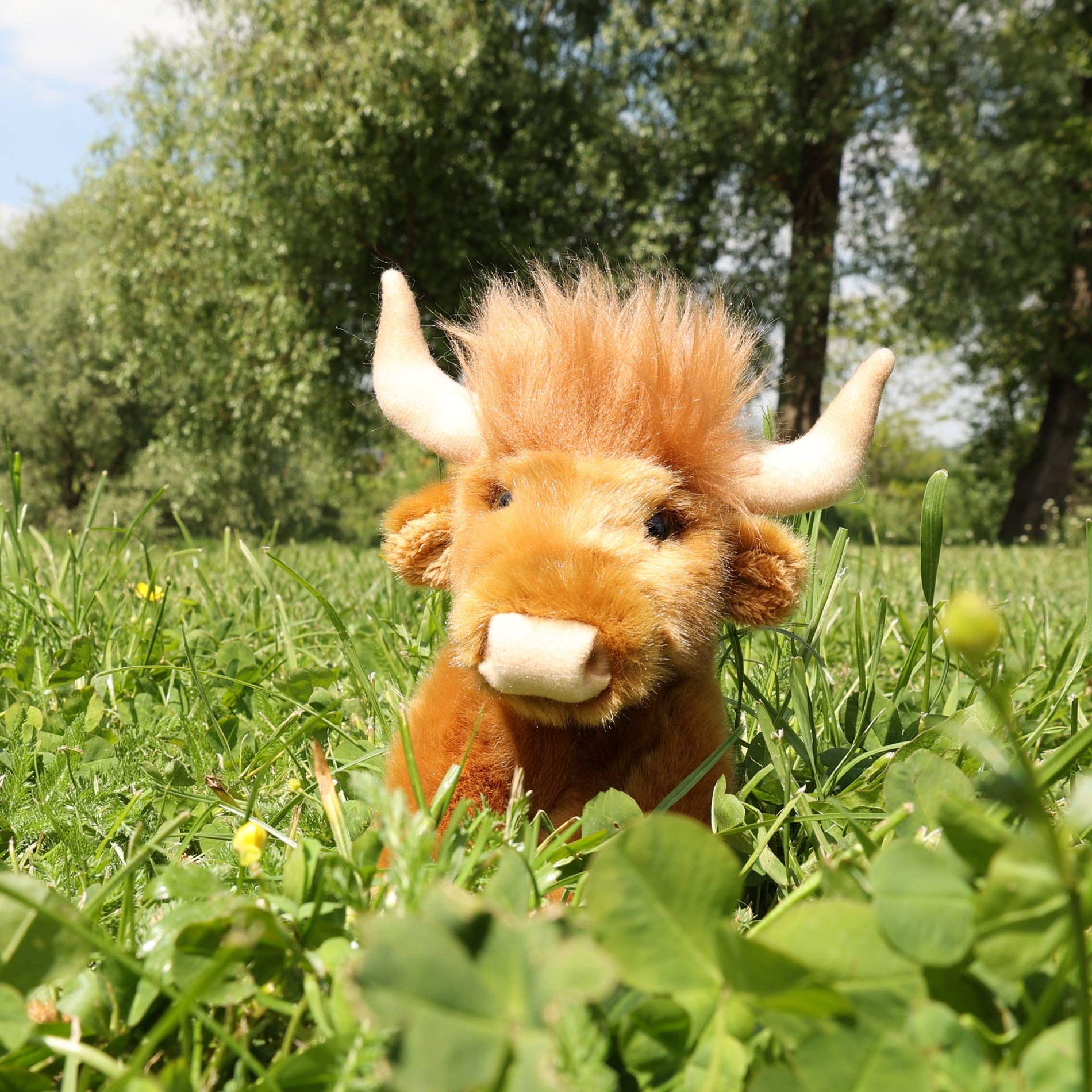Je to v podstatě jedna velká rezatá ofina na čtyřech nožkách, která do vašeho domova vnese drsnou romantiku skotských vřesovišť a absolutní ignorování hřebenů. Tento prcek je definicí stylu „vstal jsem a šel“. Jeho nejvýraznějším rysem je hustá, střapatá srst, která mu padá do očí tak důsledně, že je s podivem, že ještě nenarazil do žádné poličky. Má krátké, robustní rohy a vizáž někoho, kdo sice vypadá jako naštvaný mrak, ale v hloubi duše je to nejměkčí stvoření v okruhu padesáti kilometrů. Je to famózní dárek pro lidi, kteří mají rádi plyšáky, kteří mají víc stylu než většina influencerů.
