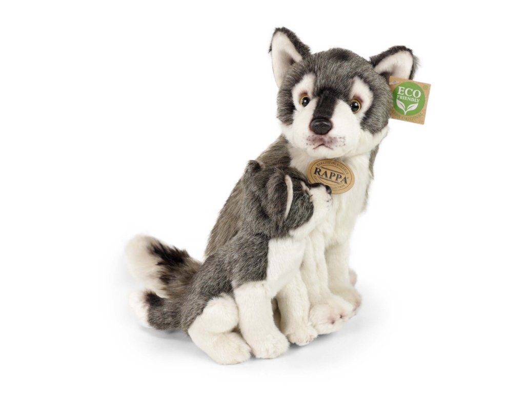 Rozkošný plyšový vlk s mláďátkem nesmí chybět ve tvé sbírce plyšáků! Sedící vlk je vyroben z exkluzivní, vysoce kvalitní plyše a jeho výška je cca 27 cm. Mláďátko je spojeno s velkým plyšovým zvířátkem pouze nití a lze jej tedy jednoduše odstřihnutím oddělit. Co to vlastně ECO-FRIENDLY znamená? Výplň plyšové hračky je vyrobena z recyklovaných PET lahví. Tento materiál je zcela bezpečný, na omak nerozeznatelný od standartní výplně a plně atestovaný pro bezpečnost i těch nejmenších. Rozhodli jsme se jít zelenou cestou co nejméně zatěžující životní prostředí- cestou ECO-FRIENDLY.Doplňkové parametry